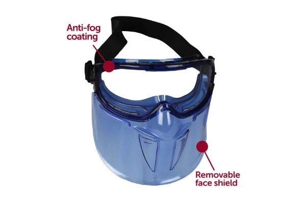 • The Shield features the Monogoggle XTR goggles, so there is no need to wear primary eye protection, like with other face shields; Replacement lens (for goggle portion) are available for order