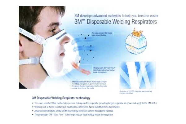 This disposable N95 particulate welding respirator is designed to help provide respiratory protection for applications such as welding or soldering where metal fumes may be present. Features 3M™ Cool Flow™ Valve, foam faceseal, adjustable head straps.