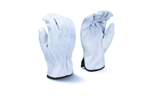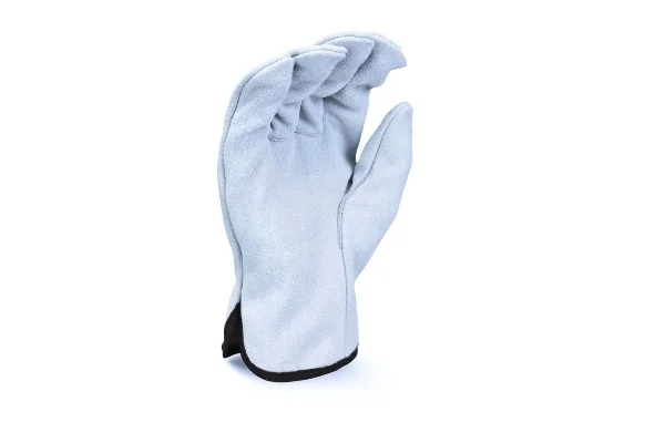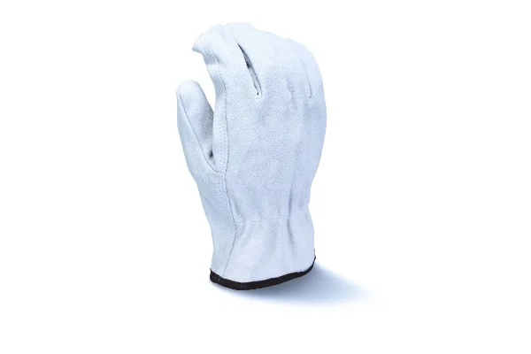 The Radians RWG4010 leather palm glove is a great economy leather glove option, offering an economy gray split cowhide leather driver, straight thumb, shirred wrist, and a cloth hem.