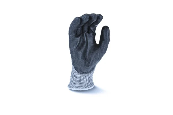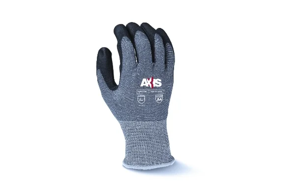 The RWG560, an Axis™ Series glove by Radians, has an ANSI Cut rating of A4 and an EN388 cut rating of 5. The RWG560 glove features a13 gauge, gray HPPE outer shell with fiberglass to provide significant protection against abrasion and cuts. The black PU palm coating provides excellent gripping power.